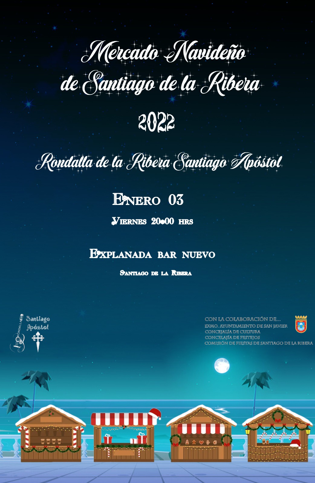 El martes 3 de enero la Rondalla Santiago Apostol interpretó parte de su repertorio de Villancicos para contribuir a acercar al público al mercado navideño que se montó en la explanada Barnuevo de Santiago de la Ribera (Murcia).